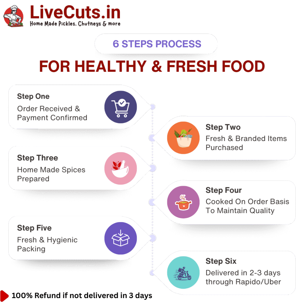 At LiveCuts.in, we believe that the secret to great taste is freshness, hygiene, and quality. Every order is prepared from scratch with care, love, and attention to detail. Here’s how we do it: